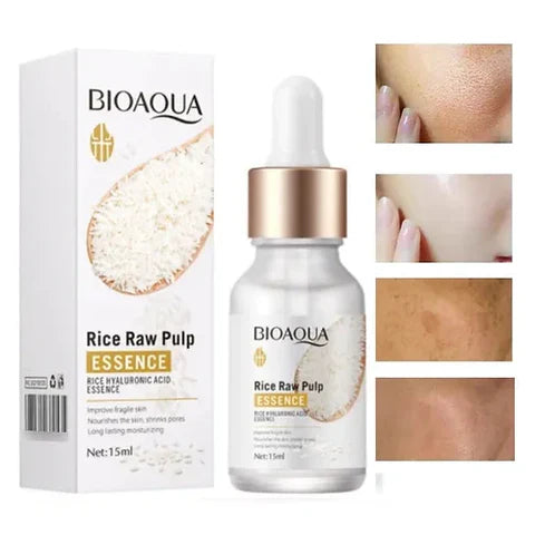 El sérum facial aclarante con extracto de arroz, contiene en el núcleo de la semilla del arroz (gérmen de arroz) y ácido hialurónico, que reducen drasticamente MANCHAS, BOLSAS, OJERAS. PATAS DE GALLINA Y signos de expresión.